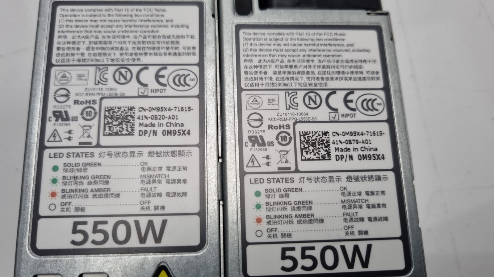 2x Dell PowerEdge R420 550W Server Power Supply Unit 0M95X4 M95X4