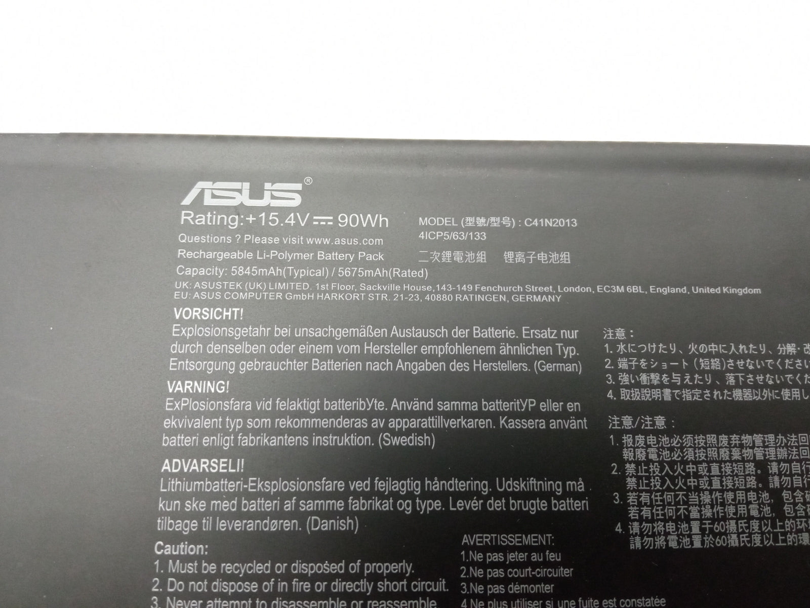 ASUS 90Wh 15.4V 5845mAh Replacement Laptop Battery 41CP5/63/133 C41N2013