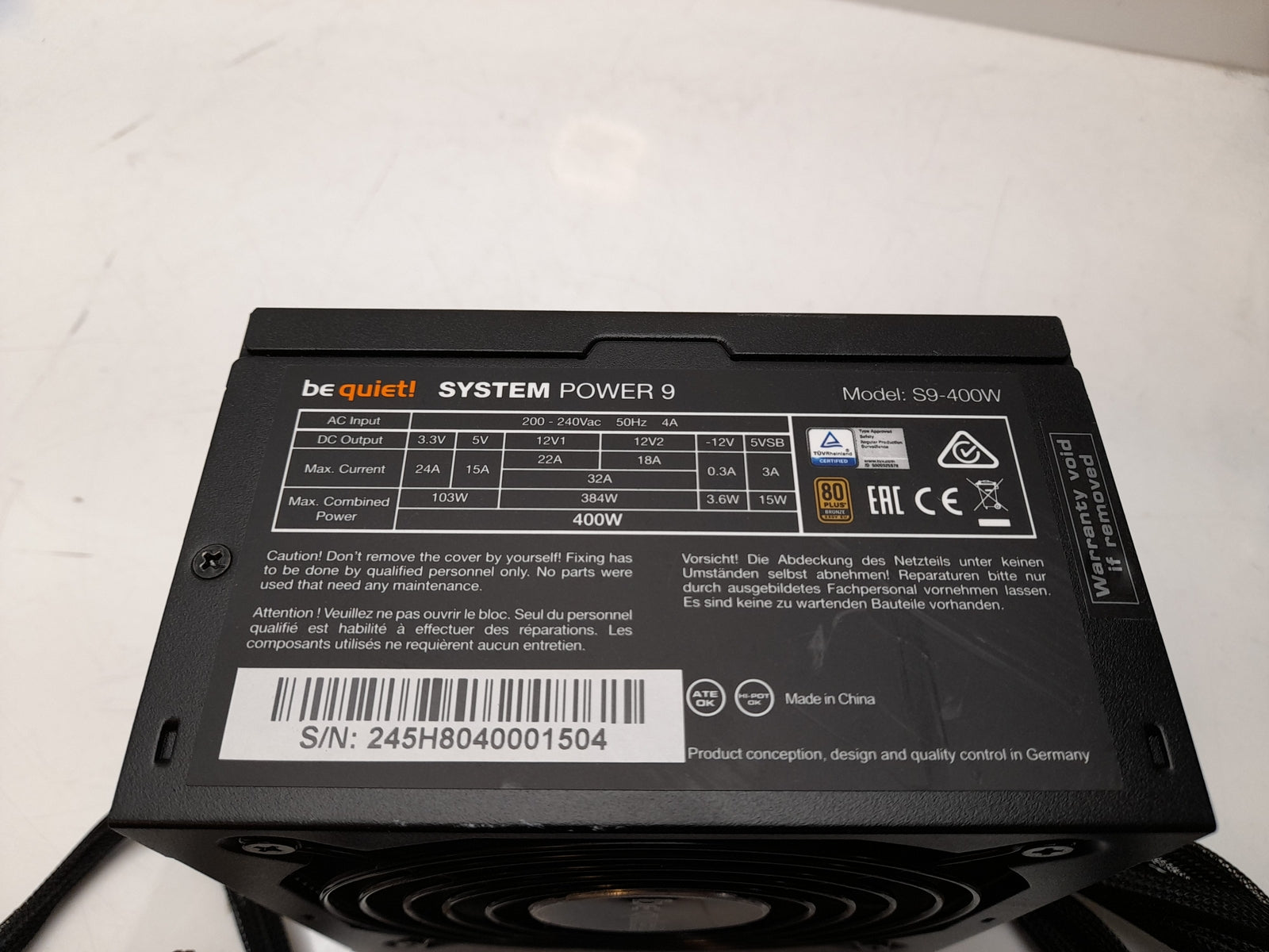 Be Quiet! S9-400W 400W ATX Power Supply Unit