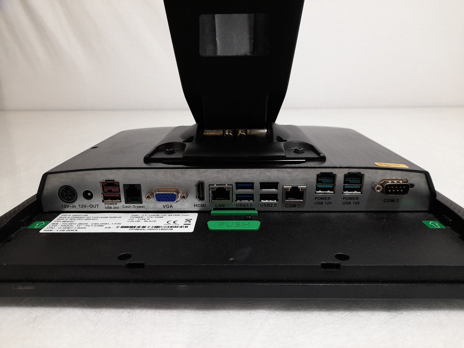 Connectivity Includes : 12v power in and out, Cash drawer connection, VGA, HDMI, Ethernet. 2x USB 3.0, 2x USB 2.0, 1 x Side USB 2.0 port, 2 x COM ports as well as USB power 12V.
