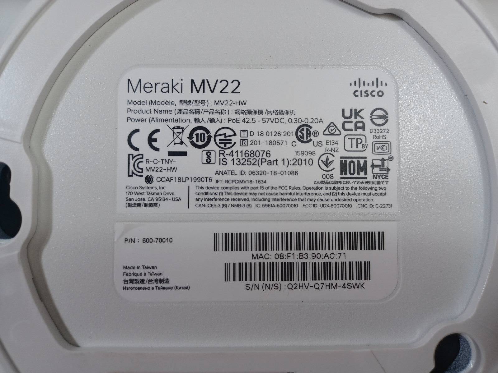 This Meraki MV22 Indoor Varifocal Dome Camera MV22-HW is new.