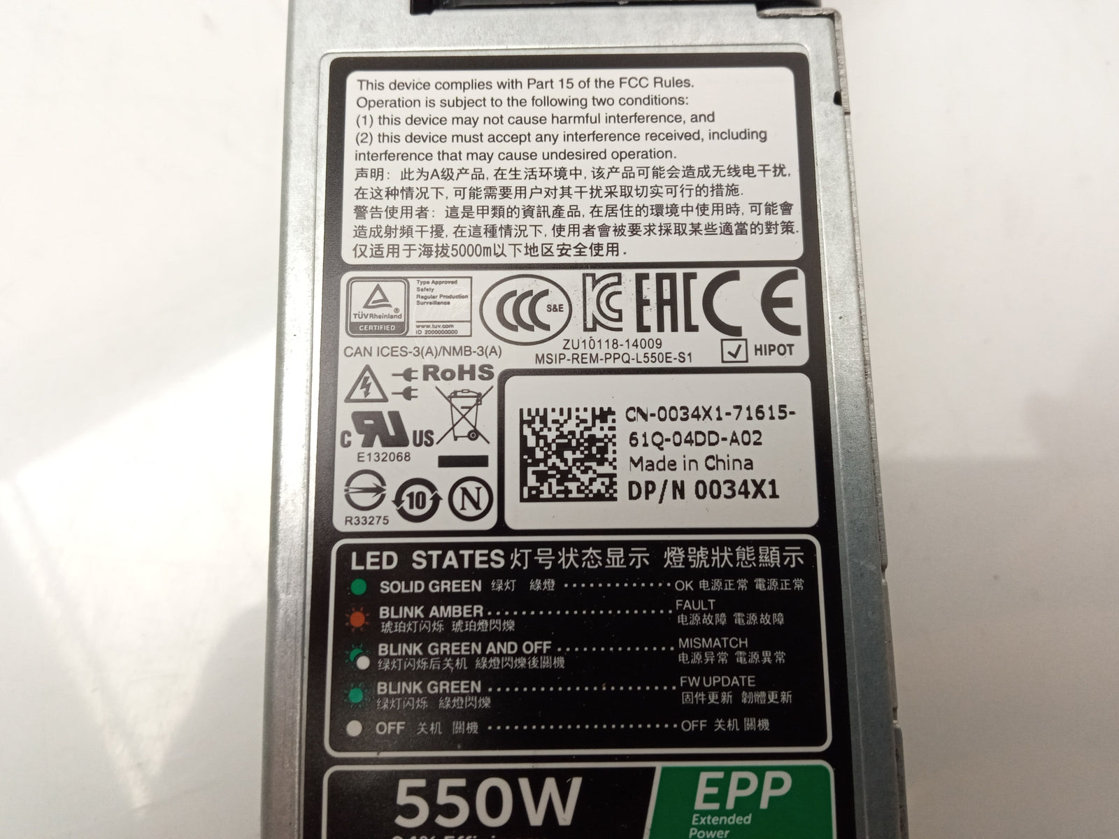 Dell PowerEdge R330 R430 550W Server Power Supply Unit 0034X1 034X1