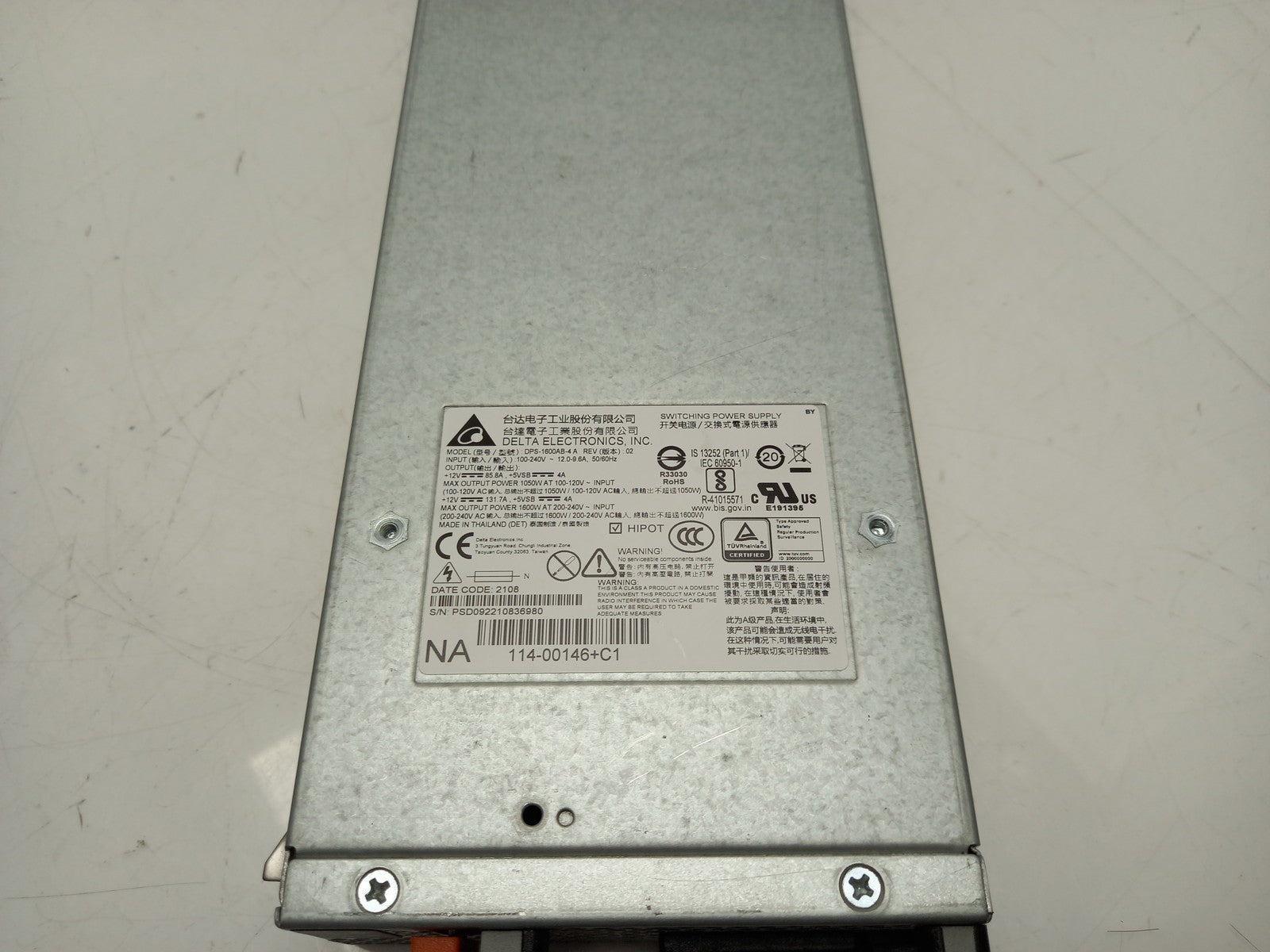Delta Electronics NETAPP 114-00146+20 1600W HotSwap Power Supply DPS-1600AB-4 A