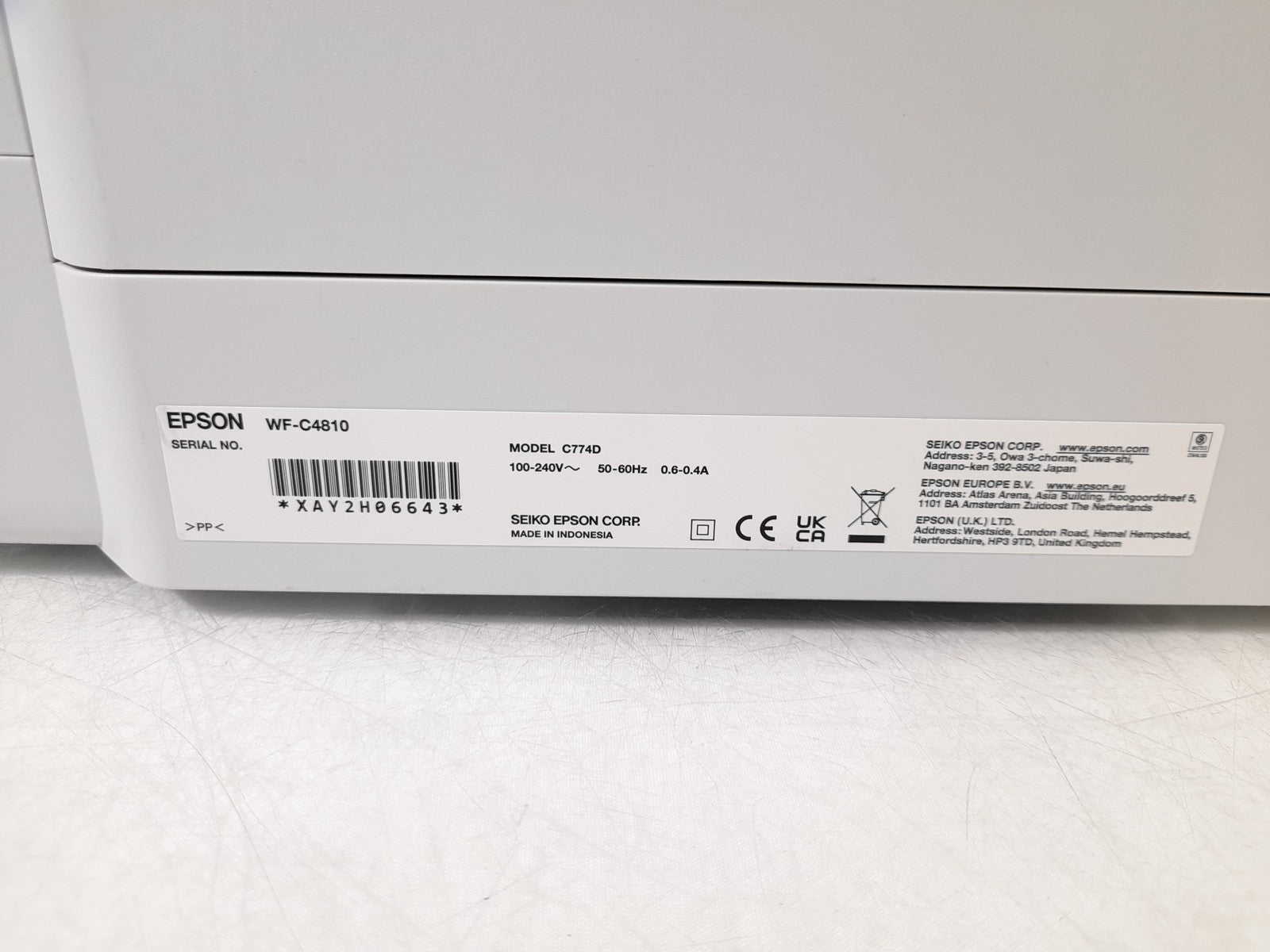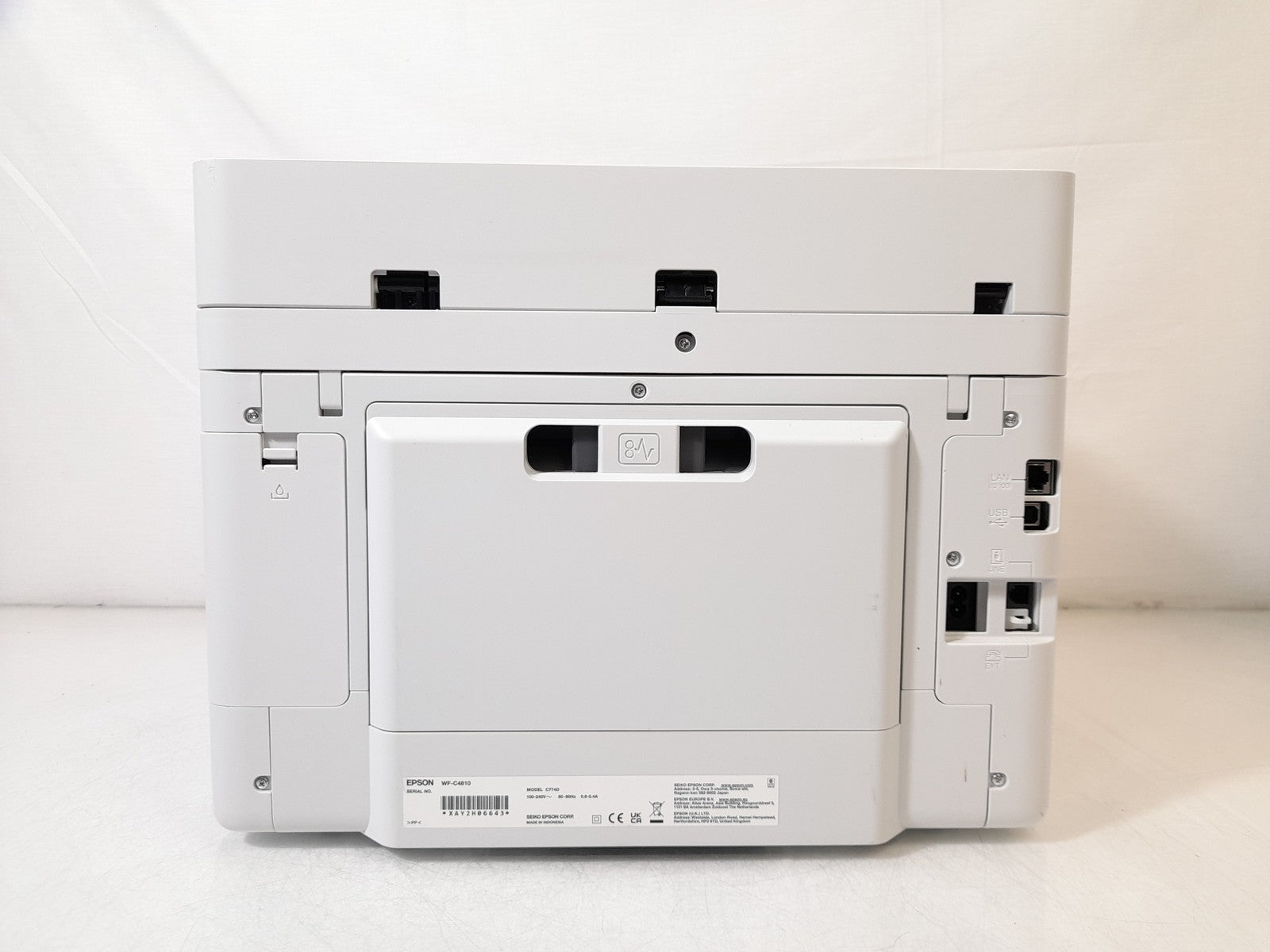 This EPSON C774D WorkForce Pro WF-C4810 AIO Wireless Print Copy Scan Fax Ethernet Printer has been fully tested and is in good working condition. Cosmetically this unit has some minor marks and scratches but is in overall good condition.