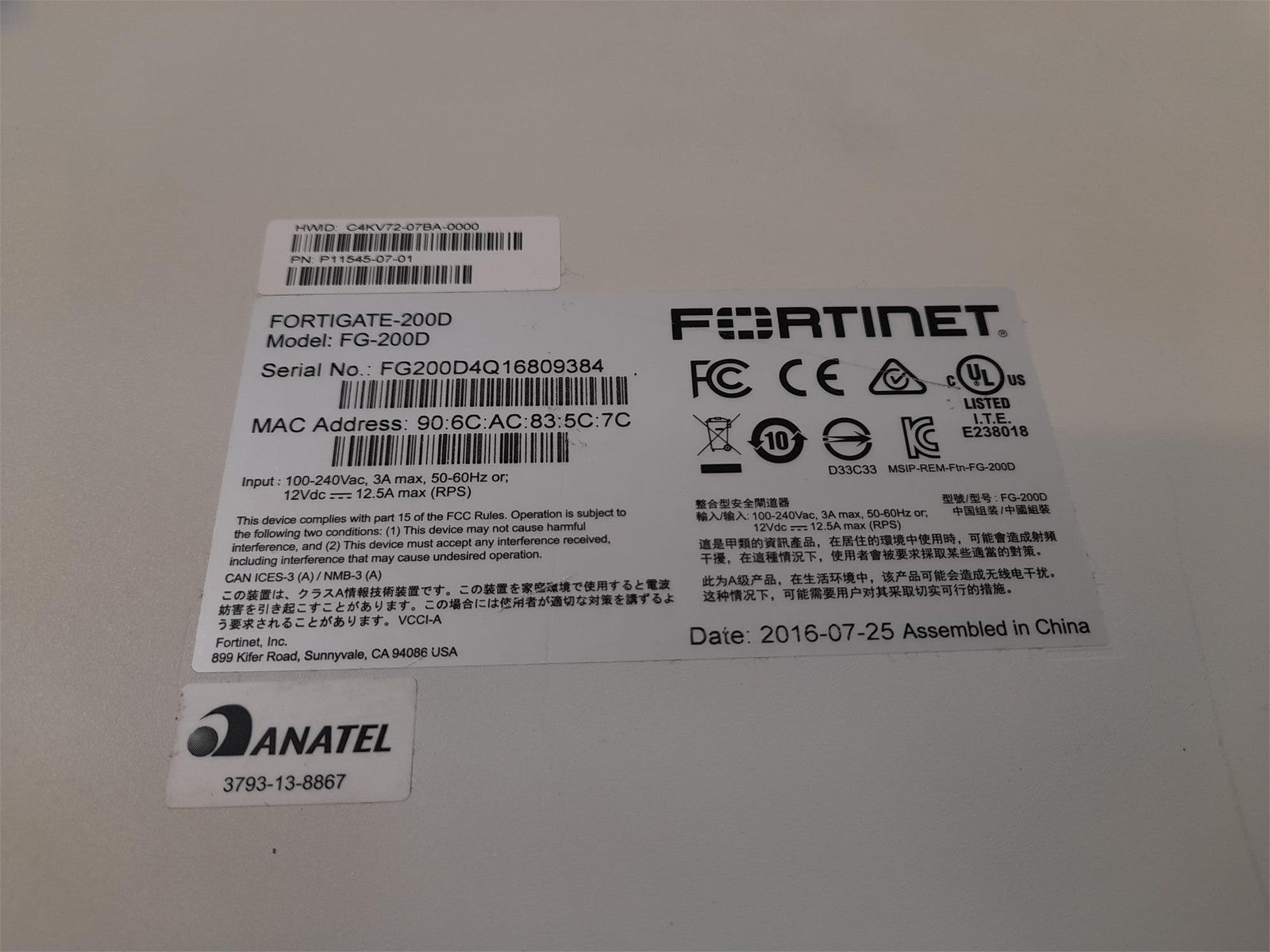 Fortinet FortiGate 200D Firewall Appliance FG-200D