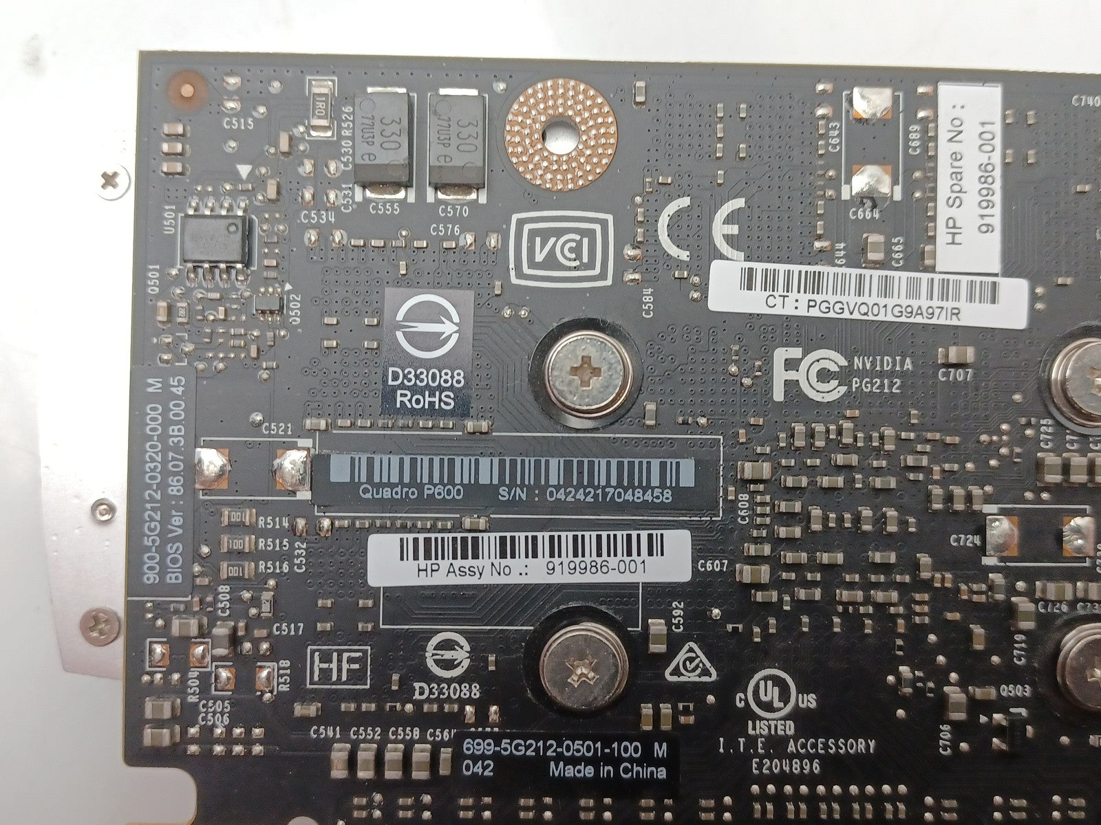 HP Nvidia Quadro P600 2GB DDR5 PCIe Video Graphics Card 919986-001