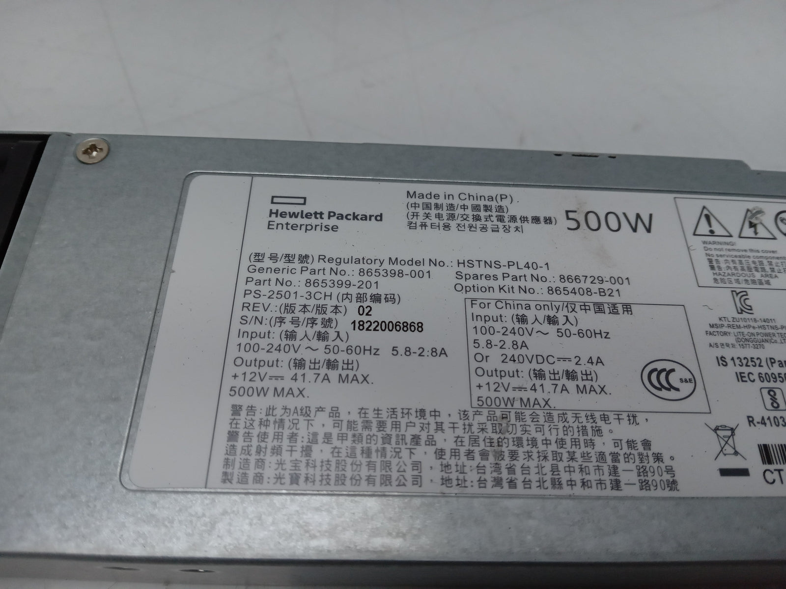 HP ProLiant DL380 GEN10 500W Server Power Supply Unit 865398-001 865399-201