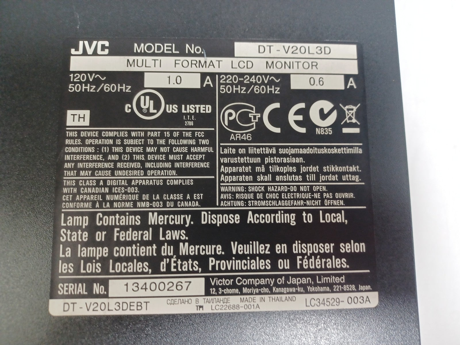 This JVC DT-V20I3D HD Multiformat 20" 1680 x 1050 Broadcast Studio LCD Monitor - Screen Scratches has been fully tested and is in good working condition.