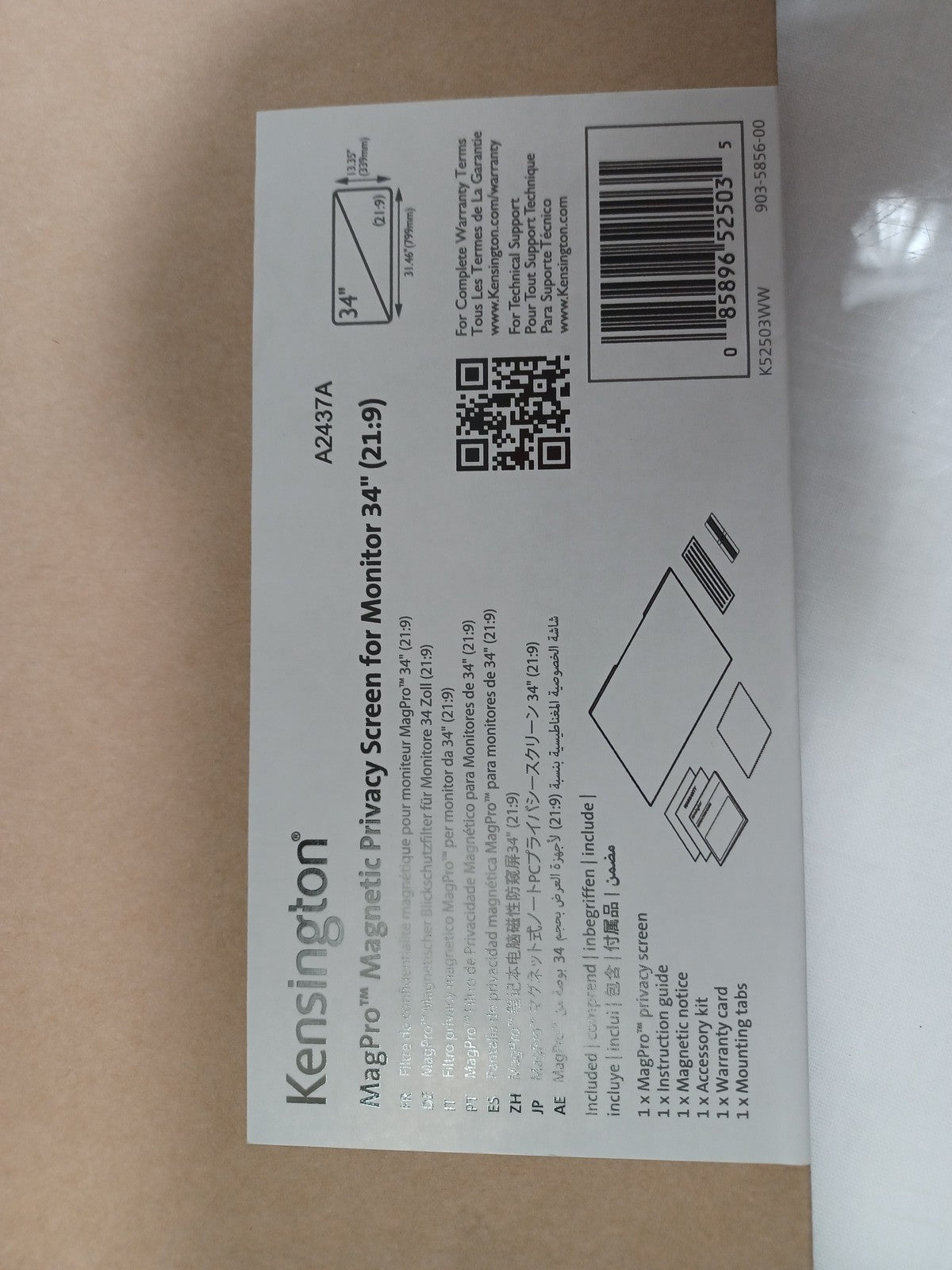 This Kensington MagPro Magnetic Privacy Screen Filter For 34" Monitors K52503WW is new.