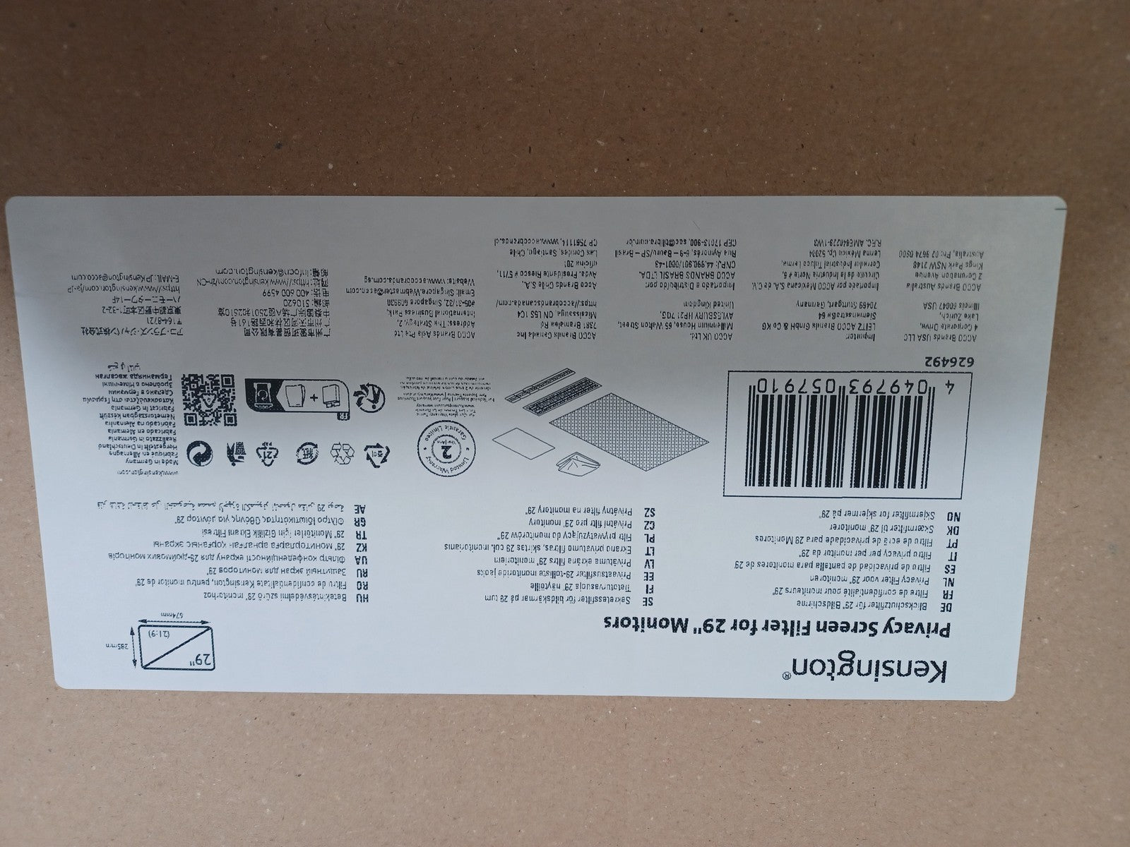 This Kensington Privacy Screen Filter For 29" Monitors 21:9 2-Way Removable 626492 is new.