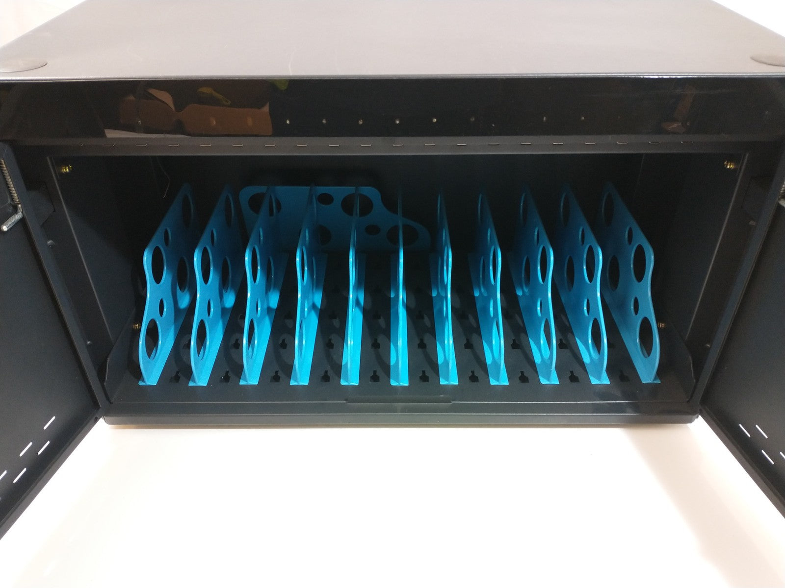 Thieves and vandals don’t stand a chance against the sturdy, durable metal housing of this Charging Cabinet. Lock it securely with the included 2-piece key set and give access only to authorized personnel. Its vertically split door requires less space to open in confined areas. A built-in fan and ventilation slots dissipate heat and keep all devices cool. Rubber feet prevent the Cabinet from slipping on any surface.