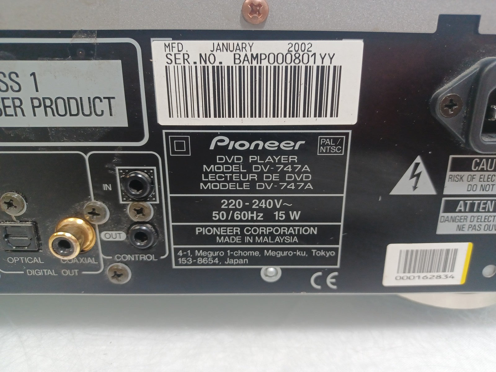This Pioneer DV-747A DVD Player is has been tested, and found to be faulty.
