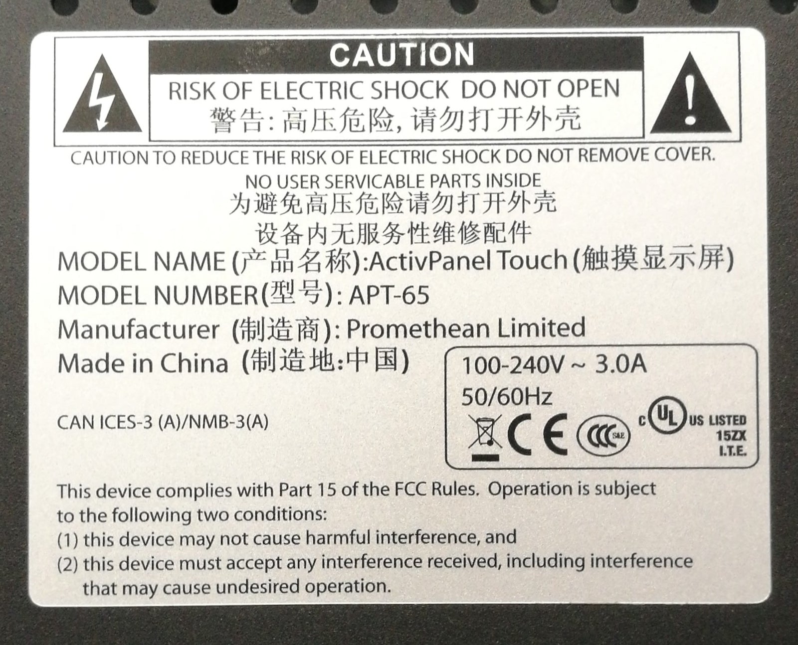 Promethean APT-65 ActivPanel 65 inch Touchscreen Full HD 1080p Monitor