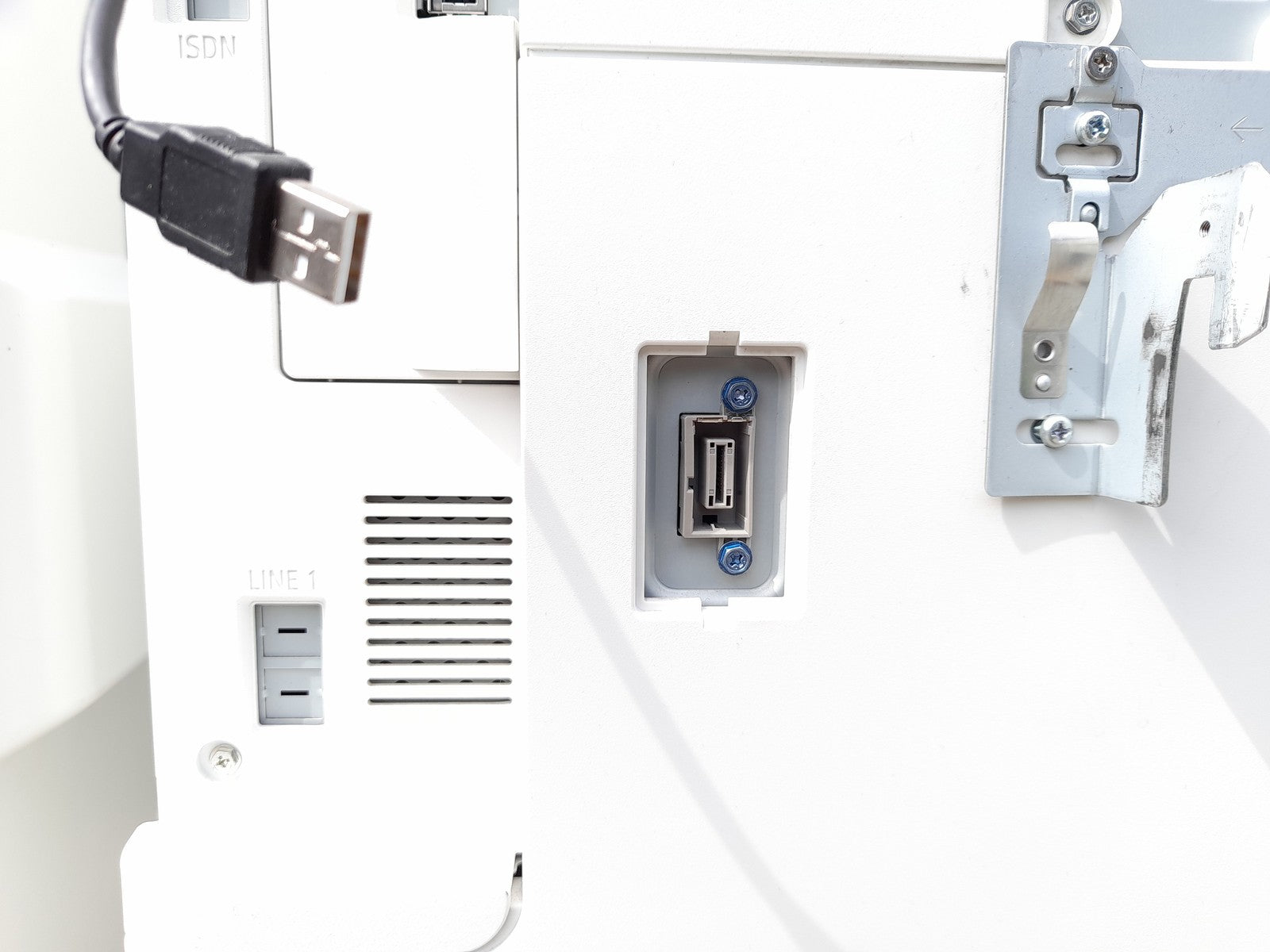 Pages print through to the side finisher unit however the finisher unit doesn't staple the pages.in addition to some minor marks and scratches but is in overall good condition.