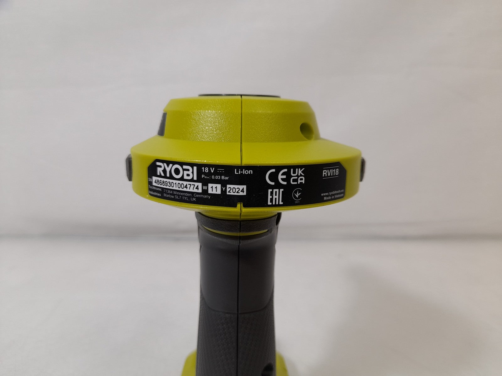 This Ryobi RVI18-0 18V ONE+ High Volume Inflator has been fully tested and is in good working condition.