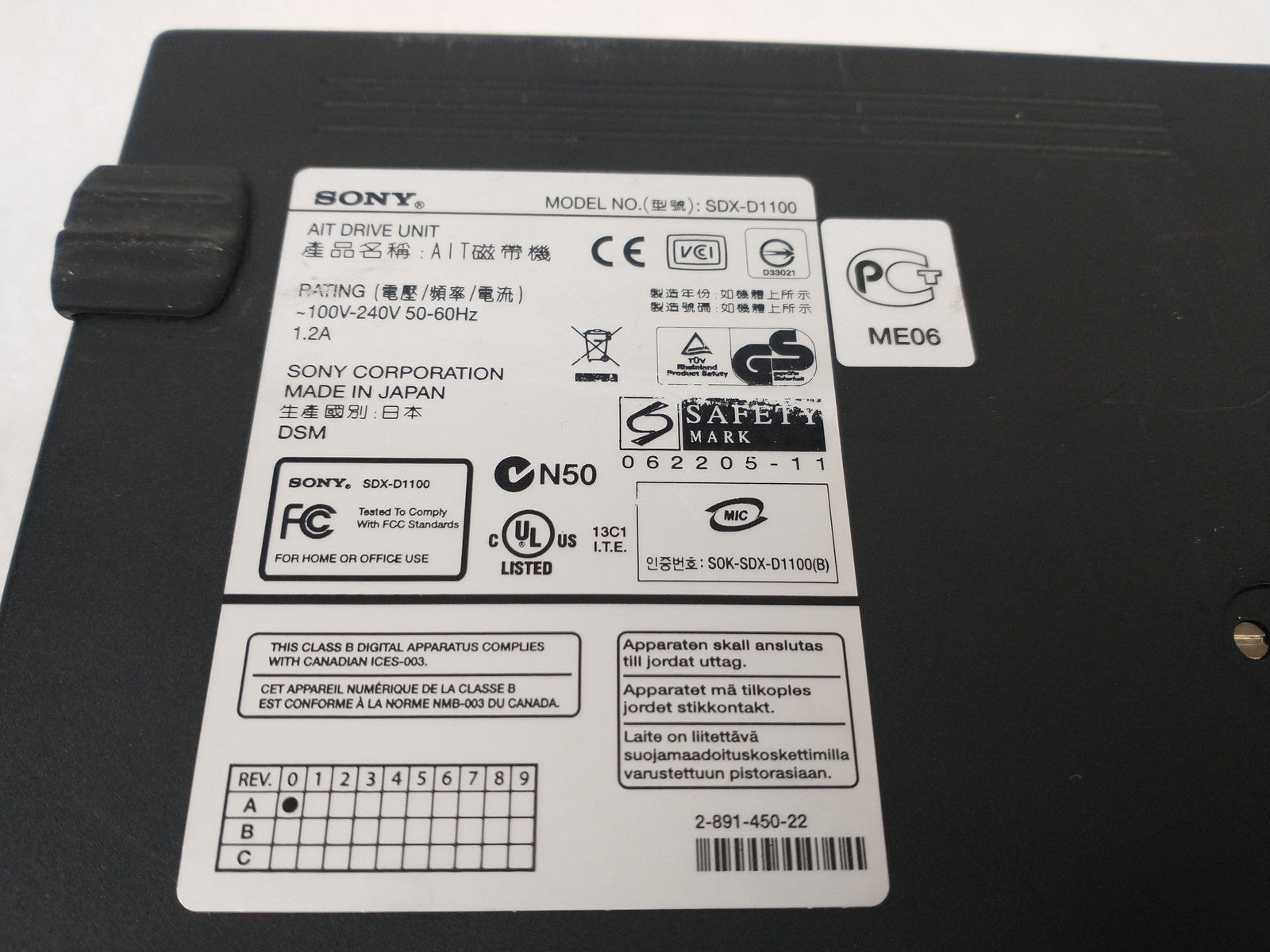 This SONY SDX-D1100 External AIT-5 SCSI Tape Drive has been been tested to power on only, but no further. Cosmetically this unit has some minor marks and scratches.