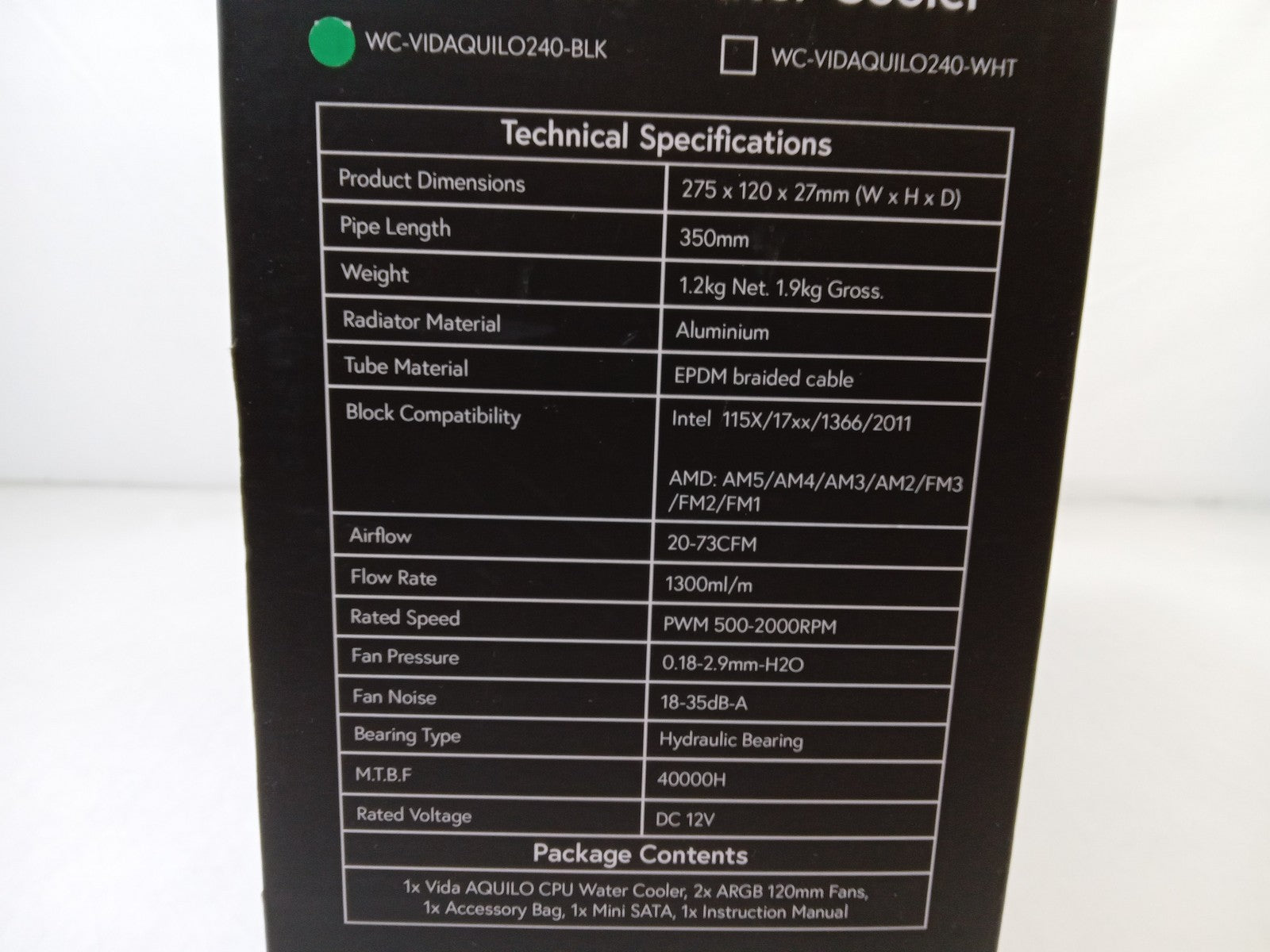 Vida AQUILO 240mm Intel/AMD CPU Black Water Cooler WC-VIDAQUILO240-BLK